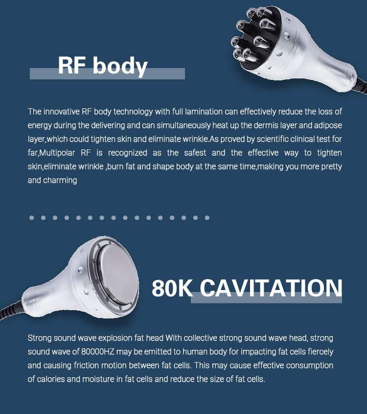 1. One machine combinesthree technology: 80K Cavitation, Vacuum, RF. It can meet your need: body slimming,