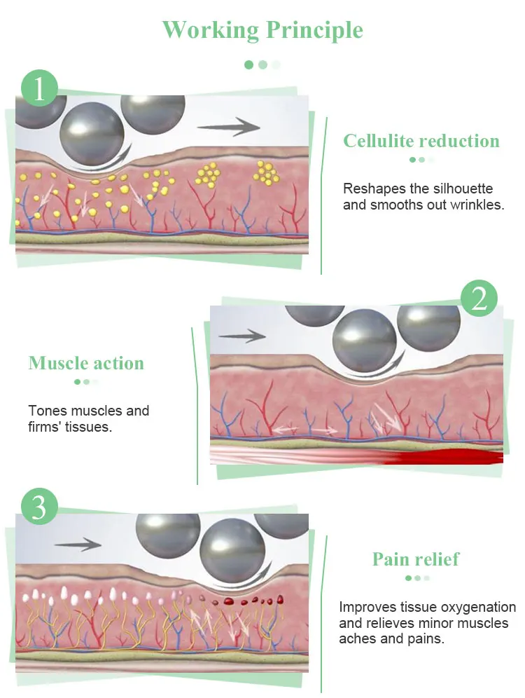 1.It is the good body sculpting and firming instrument verified, with the purpose of improving Cellulite and reducing fat ac   cumulation effectively;
